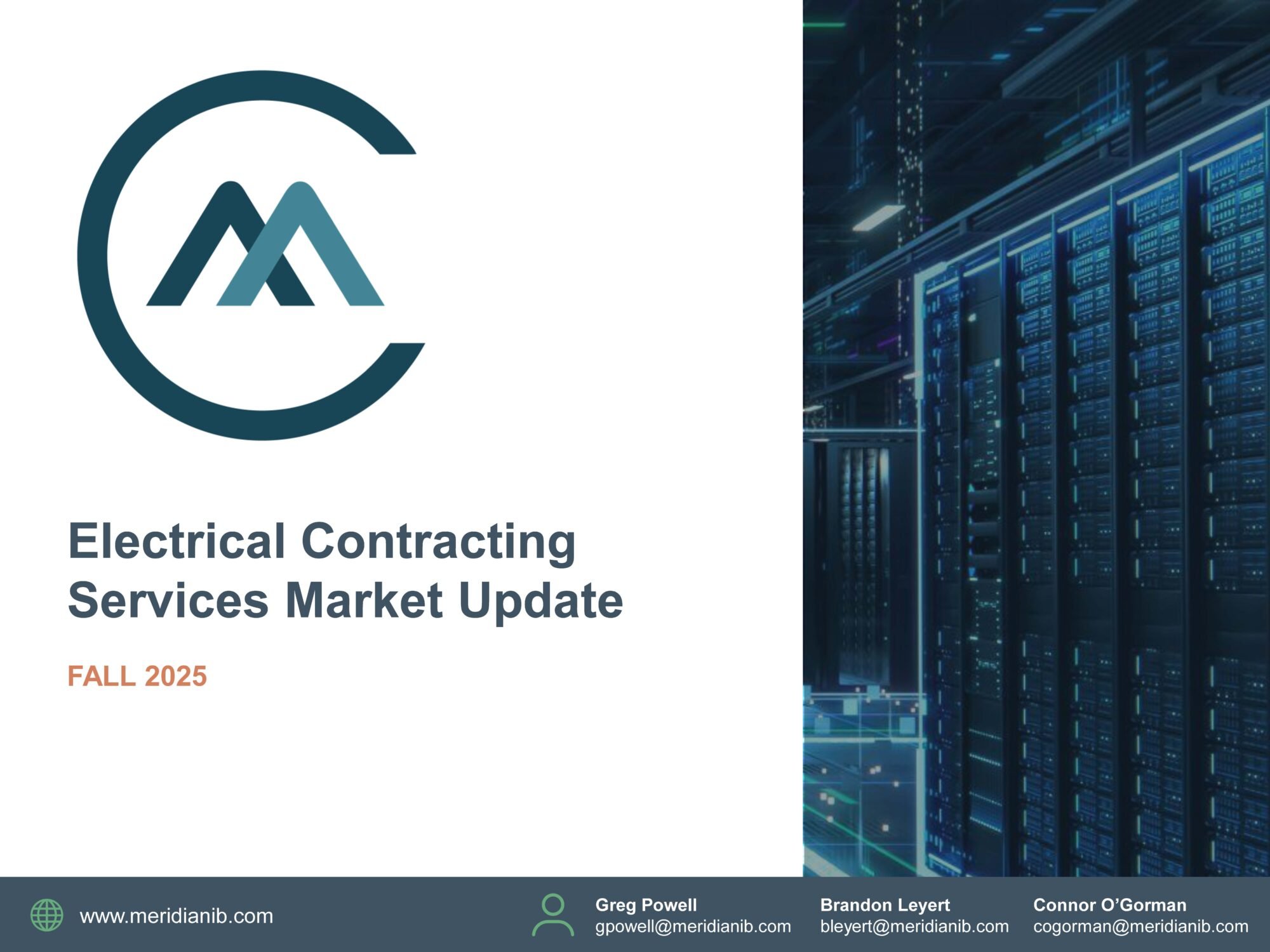 The electrical contracting services sector continues to attract strong investor interest, supported by secular growth drivers including data center expansion, electrification, renewable energy deployment, and infrastructure modernization. Skilled labor constraints and project complexity are driving demand for scaled operators with strong safety records, diversified end markets, and recurring service revenue. Strategic acquirers and private equity sponsors remain active, pursuing platform investments and add-on acquisitions to build geographic density and specialized capabilities. While deal volumes have normalized from recent highs, valuation levels for well-positioned contractors remain attractive.