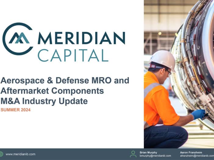 TRENDS DRIVING M&A IN AD&S MRO & Aftermarket Components Report Summary Private equity and strategic investors have remained active across the aerospace aftermarket. Fueled by strong underlying growth fundamentals and attractive business characteristics for investment, CLA Meridian Capital expects continued consolidation in the space. AD&S MRO & Aftermarket Components M&A TRENDS Key Highlights